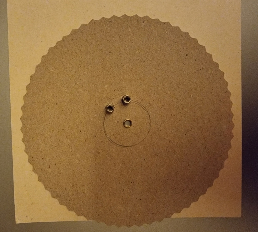 La rotation du disque est entraînée par l’aiguille des heures d’un moteur de pendule électrique.
