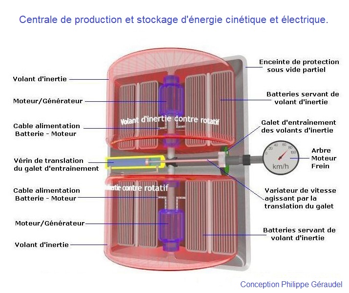 -1 Elle emmagasine à la demande de l’énergie cinétique dans ses 2 volants.
